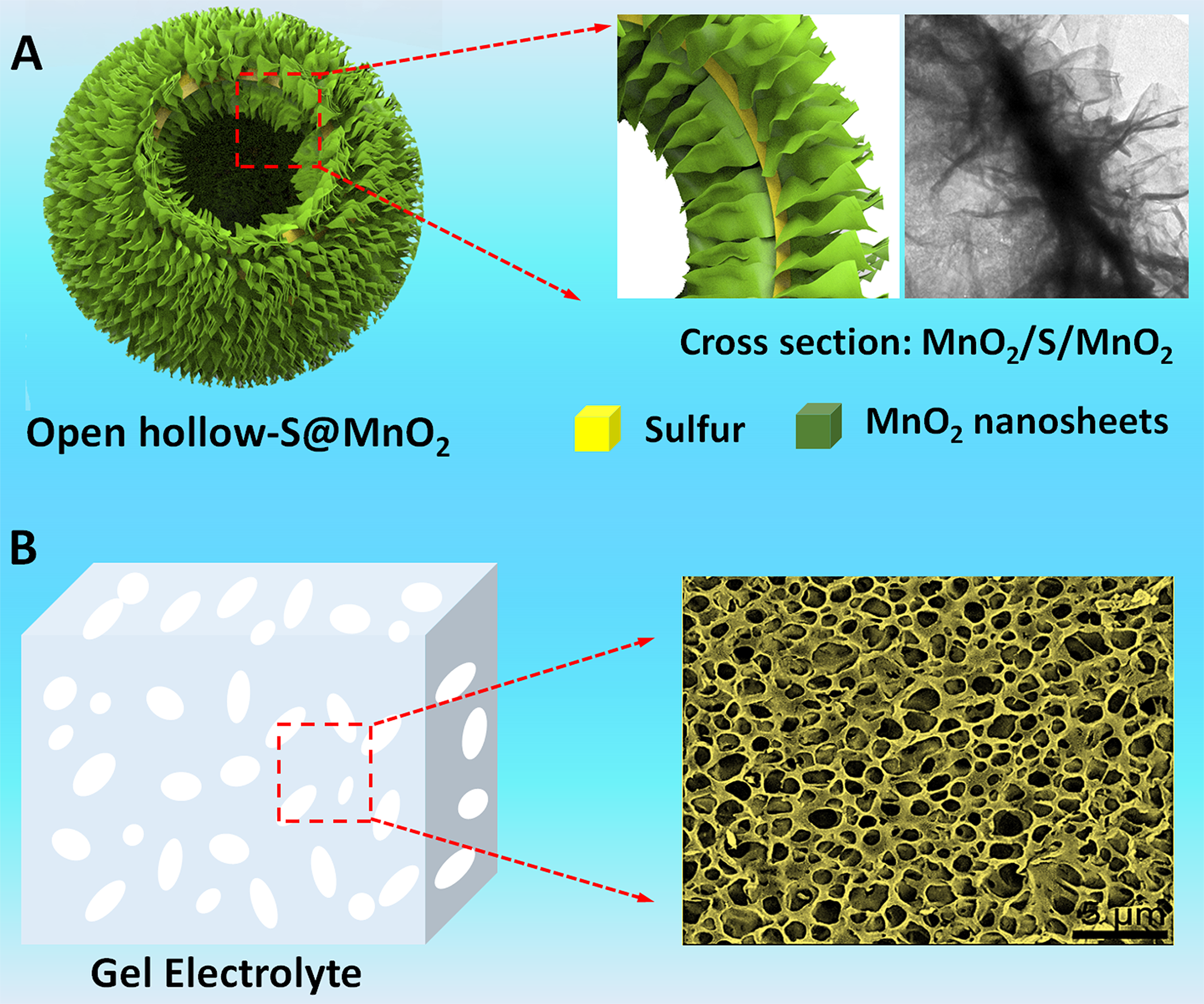 作品名称:基于纳米结构开放式空心二氧化锰夹硫负极的新一代锂硫电池(New Generation of Lithium Sulfur Battery Based on Nanostructured Open Hollow Sulfur@MnO2 Cathode)